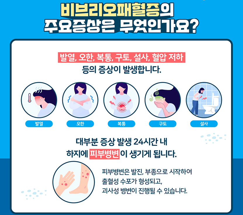 이 세균은 염분이 있는 따뜻한 해수에 서식하며, 특히 여름철과 초가을에 감염 위험이 증가합니다. 감염된 경우 급속히 진행되며, 치료가 지연될 경우 치명적인 결과를 초래할 수 있습니다.