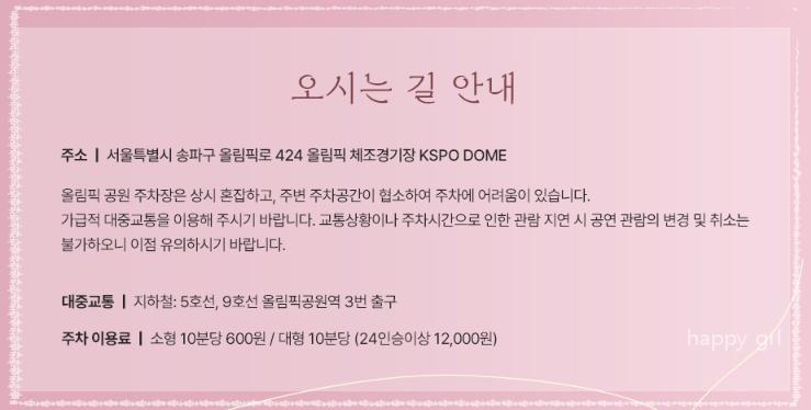 ※ 공연 당일 다수의 카메라가 설치됩니다.공연 중 관객의 모습이 담김 영상이 촬영되며 관객의 얼굴이 녹화되거나 노출될 수 있습니다.